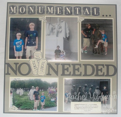 Glad you came to see another convention display sample parade project. Today we continue with the You're Amazing stamp set. I decided to scrap some of the pictures I took of the boys on our trip to Washington D.C last year for this page. I loved the play on the word monumental since all of the pictures are of different monuments we visited while in D.C. I mean really, it is monumental that no tickets are needed. There are a lot of FREE things to see while visiting our nation's capital.