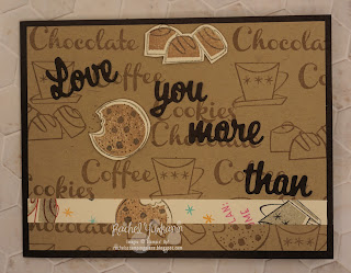 Nothings Better than Chocolate is a perfect set for me. I LOVE CHOCOLATE. I added a few extra little details from Patty's original card to make it a little bit of my own. I added a little strip of the "designer paper" we stamped for other projects to give it a little color (and I mean just a little).